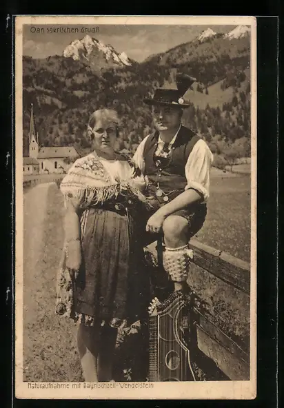 AK Bayrischzell-Wendelstein, Paar in bayerischen Trachten