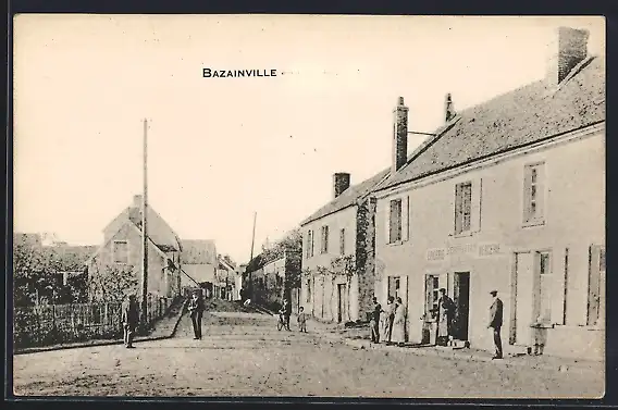 AK Bazainville, Rue principale avec habitants devant les maisons