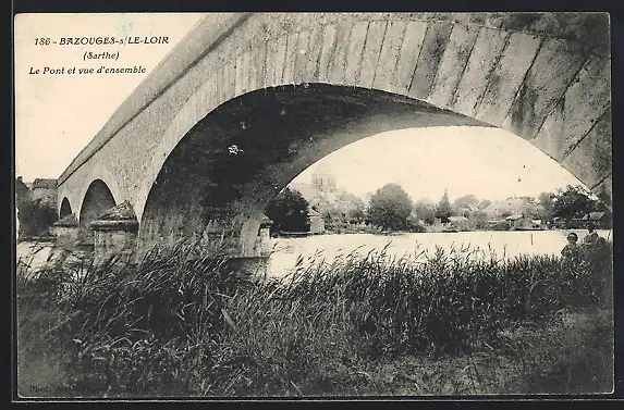 AK Bazouges-sur-le-Loir, Le Pont et vue d`ensemble