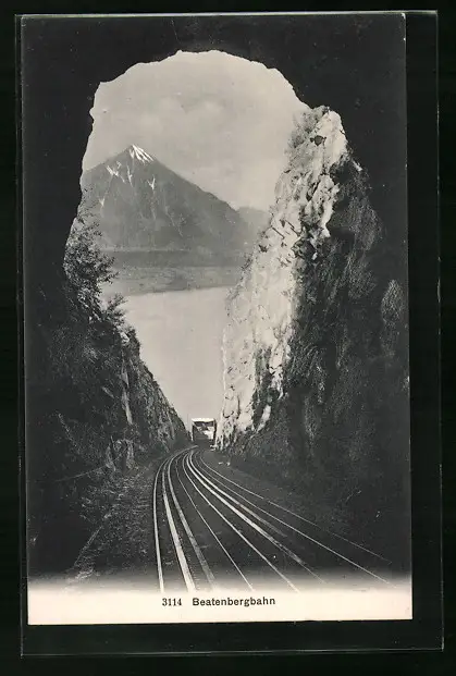 AK Beatenberg, Beatenbergbahn erreicht den Tunnel, Bergbahn