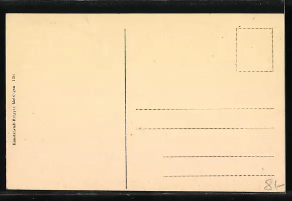 Personenbezogene Daten auf der Rückseite der Karte wurden durch blauen Textmarker unkenntlich gemacht. Die blauen Stellen sind auf die Vorderseite durchgeweicht und wirken sich negativ auf das Postkartenfoto aus