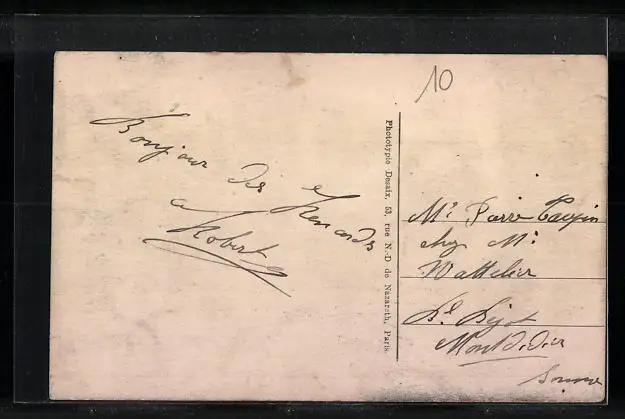 Personenbezogene Daten auf der Rückseite der Karte wurden durch blauen Textmarker unkenntlich gemacht. Die blauen Stellen sind auf die Vorderseite durchgeweicht und wirken sich negativ auf das Postkartenfoto aus