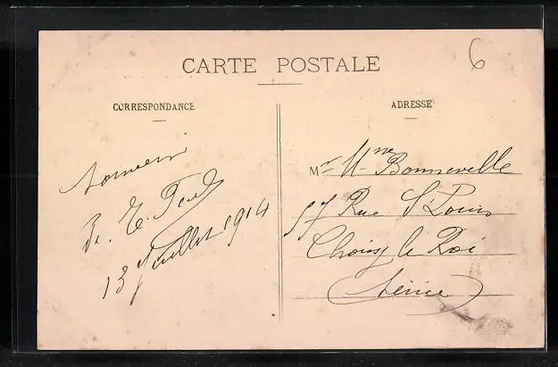 Personenbezogene Daten auf der Rückseite der Karte wurden durch blauen Textmarker unkenntlich gemacht. Die blauen Stellen sind auf die Vorderseite durchgeweicht und wirken sich negativ auf das Postkartenfoto aus