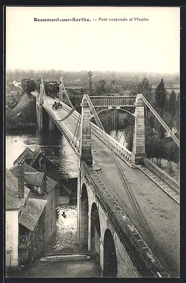AK Beaumont-sur-Sarthe, Pont suspendu et Moulin