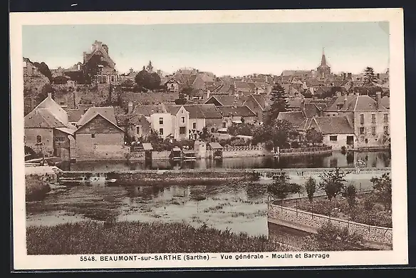 AK Beaumont-sur-Sarthe, Vue générale, Moulin et Barrage