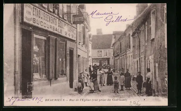 AK Beaurieux, Rue de l`Eglise (vue prise du Couchant)
