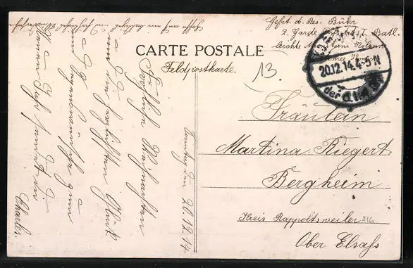 alte Ansichtskarte, gelaufen 1914 als Feldpost, Stempelspur, guter Zustand