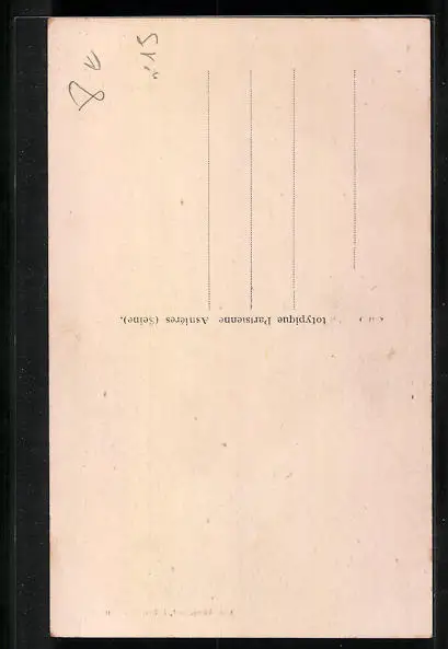 Personenbezogene Daten auf der Rückseite der Karte wurden durch blauen Textmarker unkenntlich gemacht. Die blauen Stellen sind auf die Vorderseite durchgeweicht und wirken sich negativ auf das Postkartenfoto aus