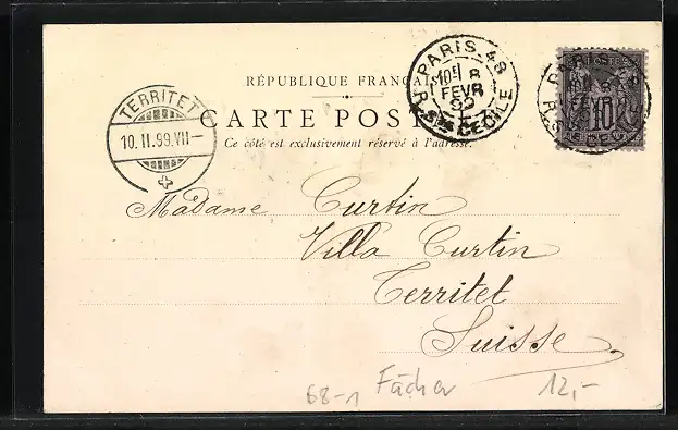 alte Ansichtskarte, gelaufen 1899, guter Zustand