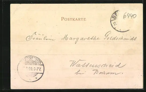 alte Ansichtskarte, gelaufen 1899, Briefmarke entfernt, guter Zustand