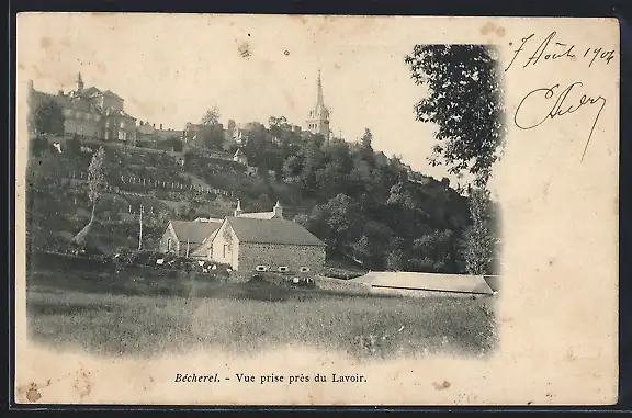 AK Bécherel, Vue prise près du Lavoir