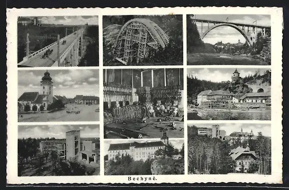 AK Bechyne, Brücke, Kirche, Gebäudeansichten