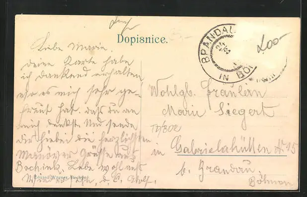 alte Ansichtskarte, gelaufen, Briefmarke entfernt, rückseitig Oberflächenschaden, guter Zustand