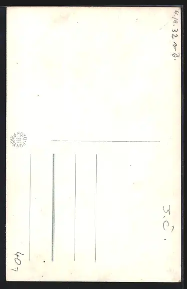 Personenbezogene Daten auf der Rückseite der Karte wurden durch blauen Textmarker unkenntlich gemacht. Die blauen Stellen sind auf die Vorderseite durchgeweicht und wirken sich negativ auf das Postkartenfoto aus