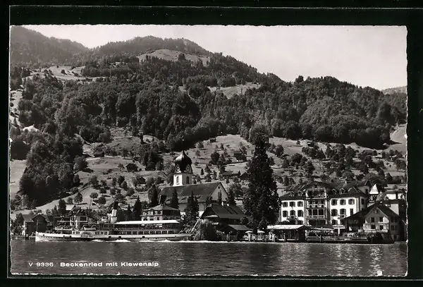 AK Beckenried, Hotel und Kirche mit Klewenalp