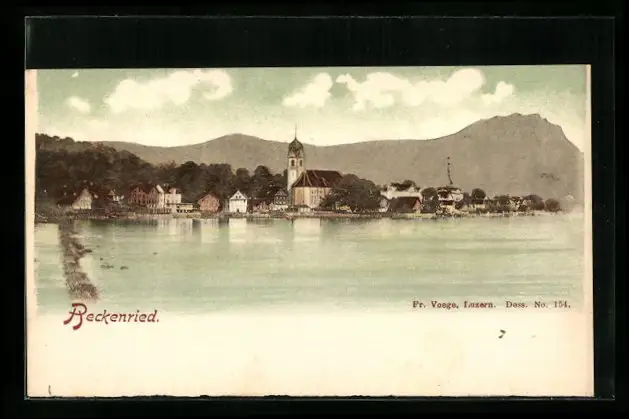 AK Beckenried, Uferpartie mit Kirche