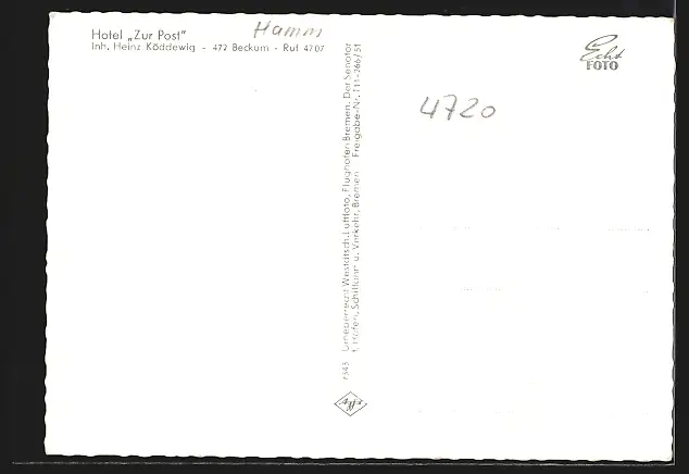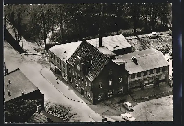 AK Beckum / Westf., Hotel zur Post aus der Vogelschau