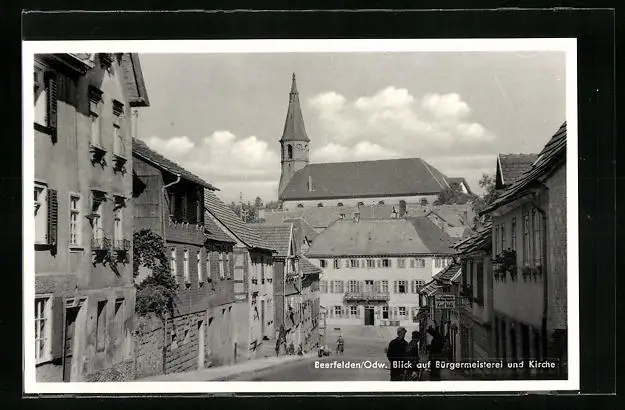 AK Beerfelden / Odw., Blick auf Bürgermeisterei und Kirche