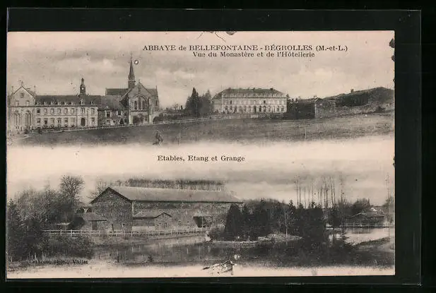 AK Bégrolles, Abbaye de Bellefontaine, Vue du Monastère et de l`Hôtellerie, Etables, Etang et Grange