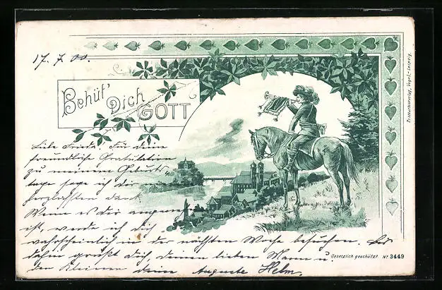 AK Behüt Dich Gott!, Trompeter zu Pferde am Ufer