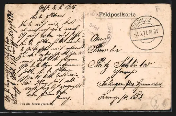 alte Ansichtskarte, gelaufen 1917, Eckknick unten li., guter Zustand