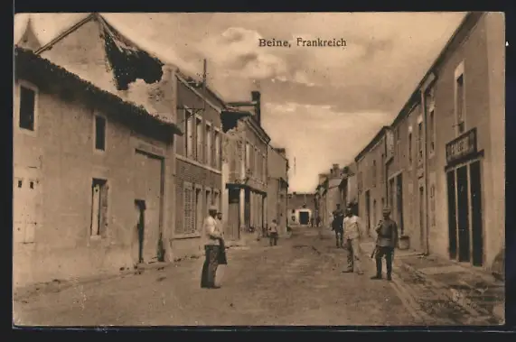 AK Beine, Strassenpartie mit Herren