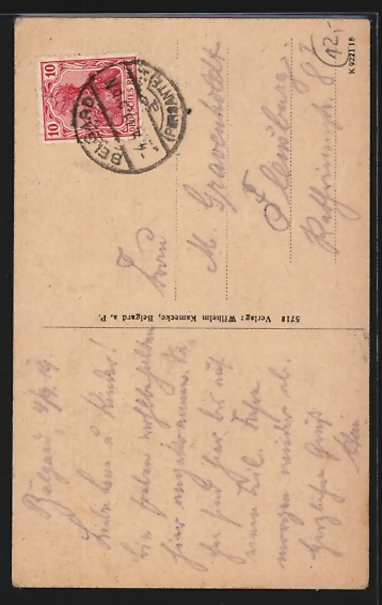 alte Ansichtskarte, gelaufen, Eckknicke oben, Eckknick rechts unten, sonst guter Zustand