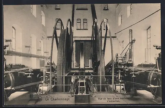 AK Belgien, Le Charbonnage, Vue de face d`une machine d`extraction