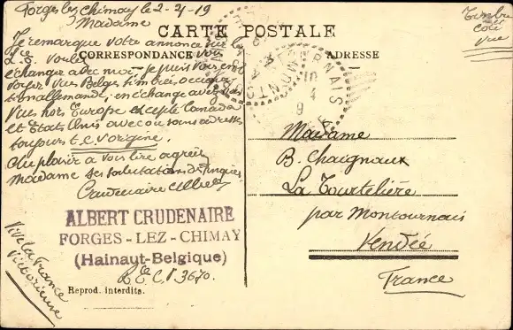Zustand, siehe Scan, gelaufen, 1919 - ca 9 cm X 14 cm