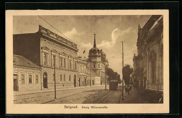 AK Belgrad, König Milanstrasse, Strassenbahn