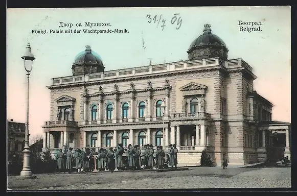 AK Belgrad, Königl. Palais mit der Wachtparade-Musik