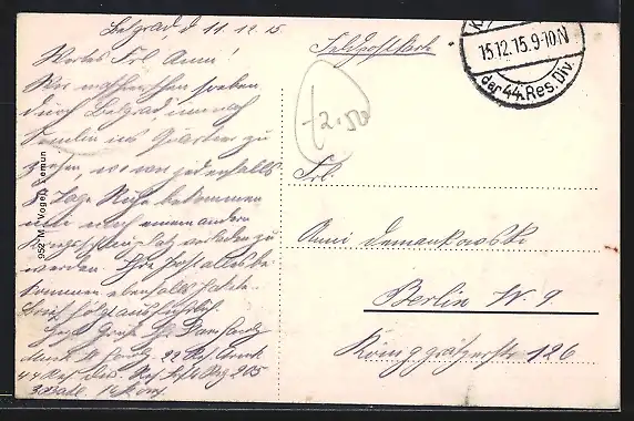 alte Ansichtskarte, gelaufen 1915, Eckknick re. unten, Stempelspur, guter Zustand