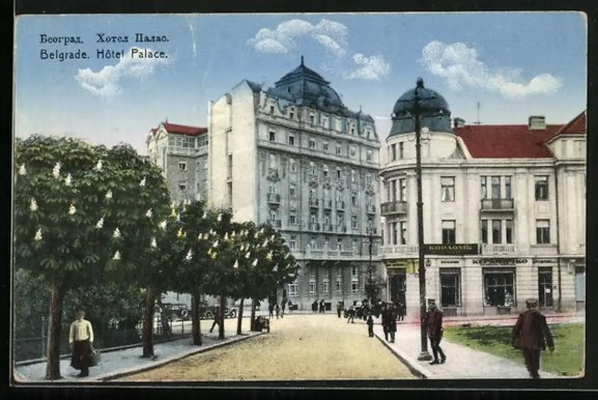 AK Belgrad, Strassenpartie am Hotel Palace