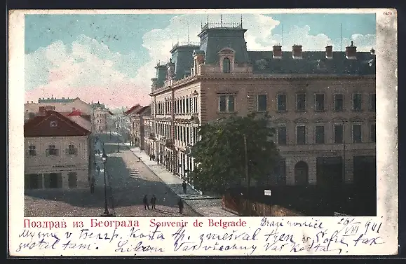 AK Belgrad, Strassenpartie mit Amtsgebäude