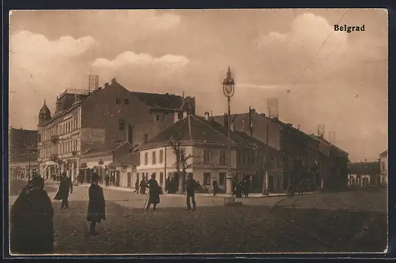AK Belgrad, Strassenpartie mit Bahngleisen