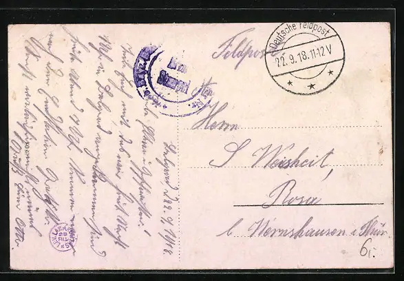 alte Ansichtskarte, gelaufen 1918, Eckknicke oben, guter Zustand
