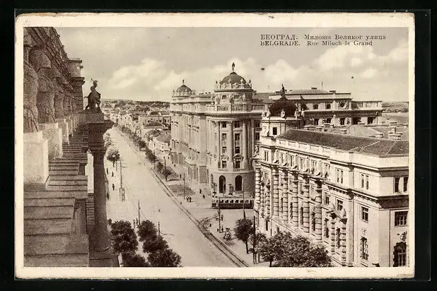 AK Belgrade, Rue Miloch le Grand, Strassenbahn