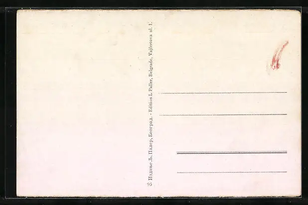 Personenbezogene Daten auf der Rückseite der Karte wurden durch blauen Textmarker unkenntlich gemacht. Die blauen Stellen sind auf die Vorderseite durchgeweicht und wirken sich negativ auf das Postkartenfoto aus