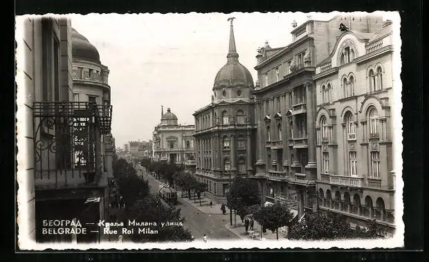 AK Belgrade, Rue Roi Milan, Strassenbahn