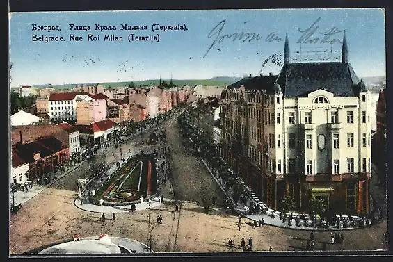 AK Belgrade, Rue Roi Milan, Strassenbahn