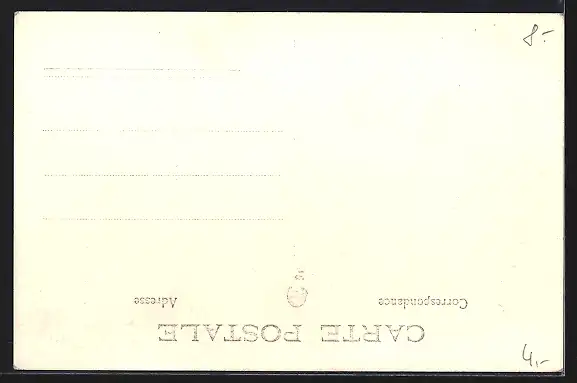 Personenbezogene Daten auf der Rückseite der Karte wurden durch blauen Textmarker unkenntlich gemacht. Die blauen Stellen sind auf die Vorderseite durchgeweicht und wirken sich negativ auf das Postkartenfoto aus