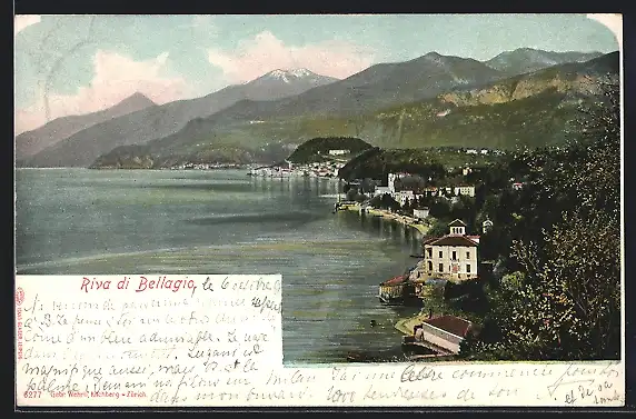 AK Bellagio, Riva, Ortsansicht mit Strandpartie