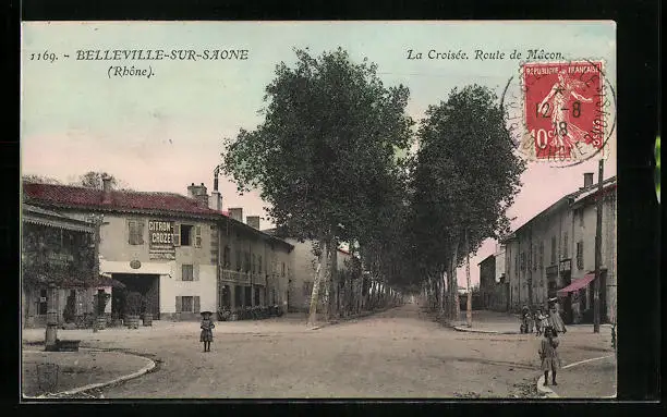 AK Belleville-sur-Saone, La Croisèe, Route de Macon
