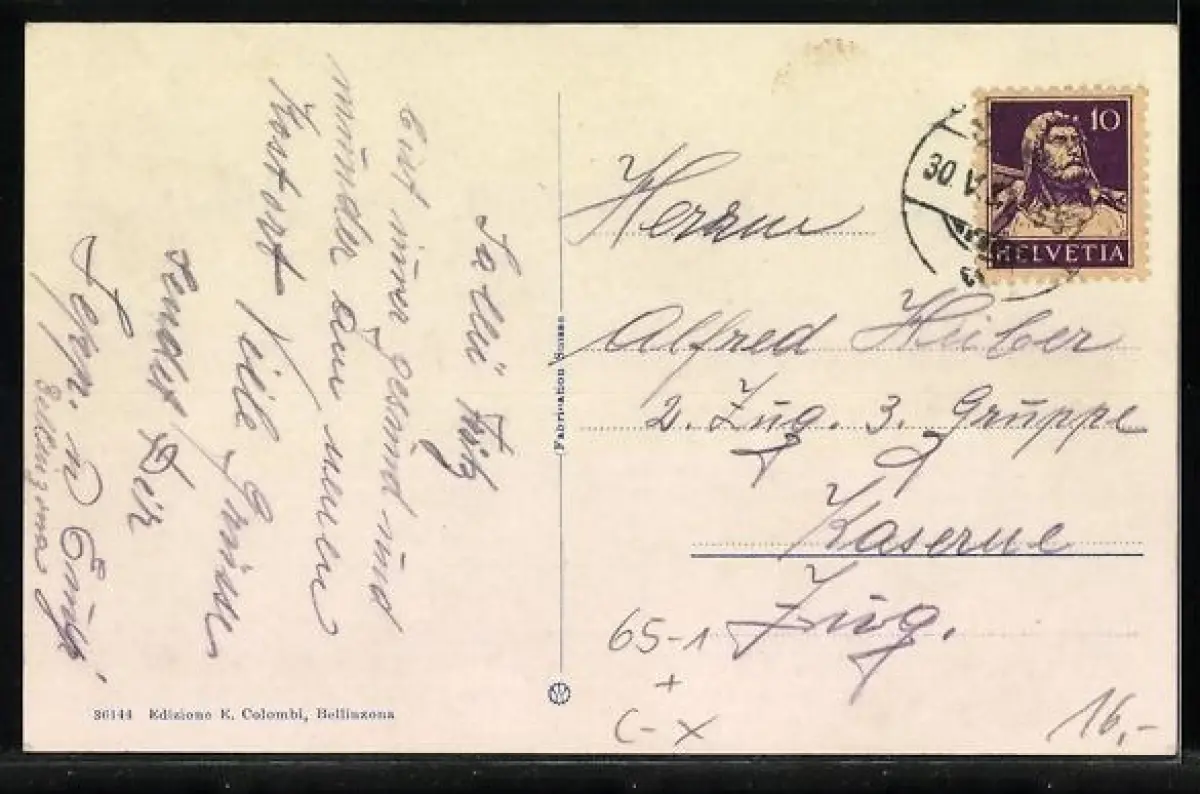 Personenbezogene Daten auf der Rückseite der Karte wurden durch blauen Textmarker unkenntlich gemacht. Die blauen Stellen sind auf die Vorderseite durchgeweicht und wirken sich negativ auf das Postkartenfoto aus
