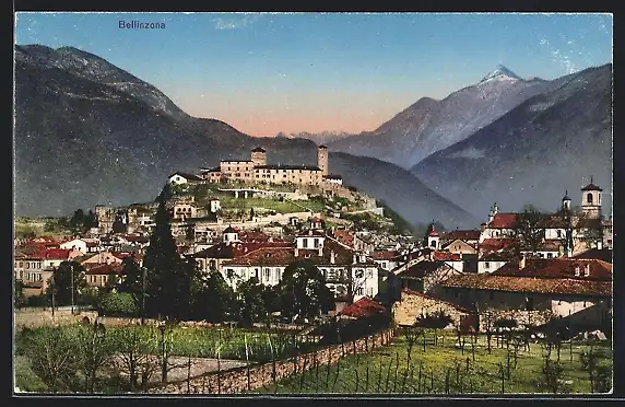 AK Bellinzona, Totalansicht von einem Berg aus