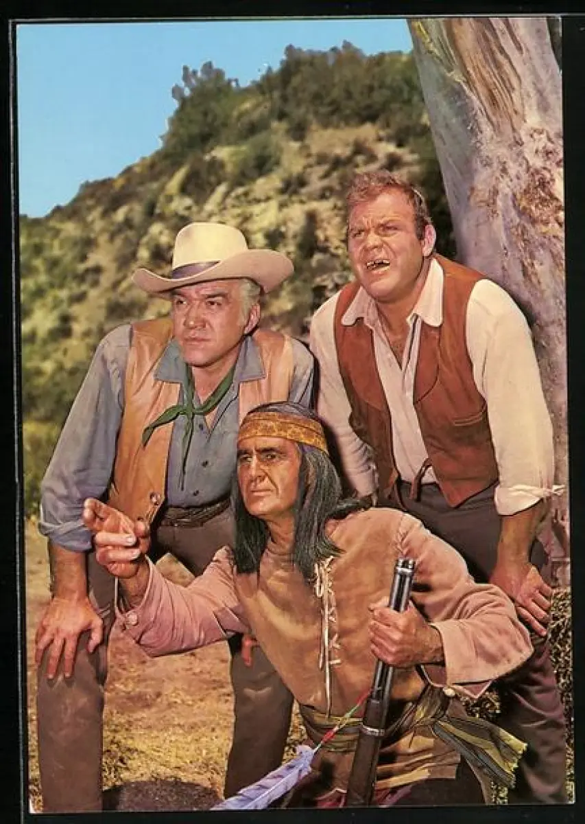 AK Ben und Hoss Cartwright aus Bonanza mit einem Indianer