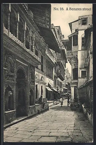 AK Benares, A street, Strassenpartie mit Geschäften