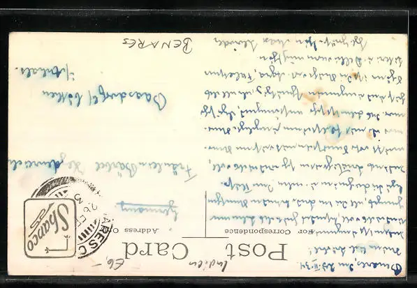 alte Ansichtskarte, gelaufen, Briefmarke entfernt, guter Zustand