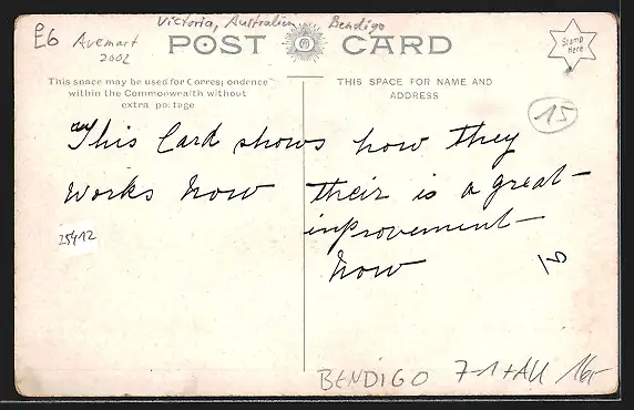 Personenbezogene Daten auf der Rückseite der Karte wurden durch blauen Textmarker unkenntlich gemacht. Die blauen Stellen sind auf die Vorderseite durchgeweicht und wirken sich negativ auf das Postkartenfoto aus