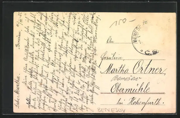 gelaufen 1922, Briefmarke tw. entfernt, rückseitig Oberflächenschaden, Eckknicke re. oben, Stempelspur, guter Zustand